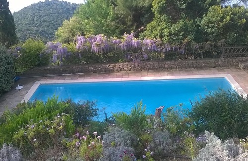 Charming villa located on a slope of 2000 m2, flowers and trees, with a beautiful mosaic pool (4 * 10m) fully fenced and 2 terraces, one covered with a barbecue stone. Provision of a ping-pong table - foosball molky - pétanque