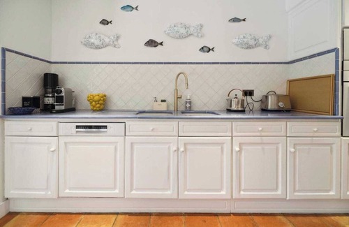 Layout: Ground floor: (Living room(TV, high chair), Kitchen(stove, electric kettle, toaster, coffee machine, oven, microwave, dishwasher, fridge, dishes and cutlery, Cooking basics), bedroom(Queen Bed), bedroom(Queen Bed), bedroom(Queen Bed), bedroom(Queen Bed), bathroom(bath tub, shower, toilet), bathroom(shower, toilet), bathroom(shower, toilet), bathroom(shower, toilet)) On the 1st floor: (bedroom(Queen Bed), bedroom(Queen Bed), bathroom(bathtub with shower, toilet), bathroom(washbasin, toilet)) Bed Linen, Desk, Hot Water, Internet Access DSL, Safe, Wardrobe, First Aid, Play area, tumble dryer, washing machine, heating, air conditioning, swimming pool, private outdoor pool, iron, hairdryer, Towels/Sheets (Incl.), shampoo, Essentials, Dedicated workspace, Carbon monoxide detector, Cleaning Disinfection, Enhanced cleaning practices, High touch surfaces disinfected, Long term stays allowed, Near Ocean, Room-darkening shades, Rural, Wide doorway