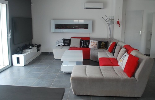 We built our villa a year ago, bringing all the necessary comfort: air conditioning, fully equipped kitchen (American fridge / freezer with water dispenser / ice / crushed ice, dishwasher, induction hob, Nespresso coffee machine, Thermomix, wine cellar ...) 75 "cinema TV screen, connected Sonos speakers, washing machine, dryer ... two bathrooms, one with bathtub. Softened water throughout the house.