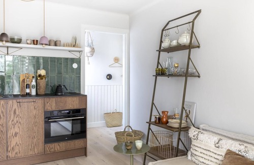 Palm Tree is a boutique gem, located on the first floor and accessed via an outdoor wooden staircase. The moss-green Portuguese tiles in the kitchen, combined with handmade furniture from Morocco, give this flat an exotic feel.