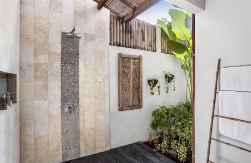 All bedrooms have large double beds with four poster beds and Balinese inspired semi open ensuite bathrooms.