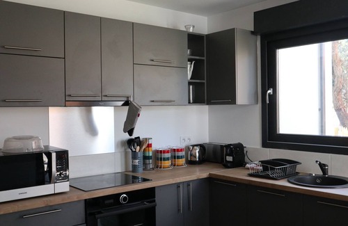 New villa, duplex, semi-detached, located in a quiet area of the seaside resort of Moliets, about 4 km from the ocean beach, and 2 km from the center of the village.