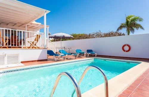 Villa Monica is a detached vacation rental located in Puerto del Carmen, Lanzarote. This spacious property features air-conditioning, free Wi-Fi, and accommodates up to 10 guests across 5 bedrooms and 3 bathrooms. Enjoy a private south-west facing pool, a built-in barbecue, and easy walking access to the beach and local restaurants.