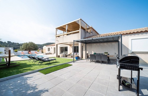The Cocoonr/Book&Pay agency offers you to rent, in Vivès, this charming air-conditioned house with swimming pool and a panoramic sight on the mountains, of a surface of 300 m ² and being able to accomodate until 14 travellers. It is composed of a nice living room of 100 m², open fully equipped kitchen, seven beautiful bedrooms, three bathrooms and a garden of about 1,260 m². Sheets and towels included, we are waiting for you!