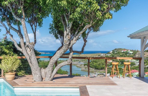Villa Nolen, nestled in the heights of Grand-Cul-de-Sac in Saint-Barth, is a luxurious escape offering breathtaking views over the turquoise lagoon.