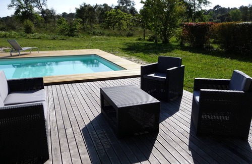 (Text automatically translated) Villa with private pool in the Royal Ocean Club - La Prade. Renovated in 2015. Without vis-à-vis and calm. Near the south beach and the golf course MOLIETS - Top 25 European, tennis all surfaces, the surf spot, lakes, forest ... Living room with large fireplace opened by a panoramic bay overlooking the terrace facing the Landes undergrowth frequented by hares, squirrels and deer ... At about 900m from the fine sand beach 'les chênes corks', accessible by bike paths and footpaths that cross the golf course. The Villa is peaceful and allows you to relax while having the opportunity to practice the many sports or natural activities offered by Moliets-et-Maa. 32 "LED TV equipment. At the weekly rates above, add 220 € for 1-5 pers, 330 € for 6 to 8 pers including all taxes and services (personalized welcome, linens, cleaning, hot line technical assistance, pay-per-view services on a paid option) ...). Swimming pool heating on paying option at a modulated rate according to the periods. Security deposit 1500 €; 30% deposit upon reservation