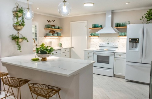 Welcome to Villa Palmas! A boutique-style property with a stunning private backyard oasis just one mile from the ocean. This 5 bedroom, 3 bath home evokes a unique Florida vibe all it's own. Thoughtfully appointed bedrooms, two of which are masters with their own on-suite bathrooms. Heated pool nestled underneath twelve different types of majestic palms. Mix up your favorite cocktail in the lounge, or cook in the fully stocked open kitchen- up to you. This is Florida vacation living at it's best