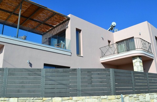 Through the villa, everyone is able to enjoy breathtaking views of the cretan sea. There is a private parking for your car. The Beautiful beach of Falasarna and Balos are about 10 minutes away. The outside of the villa has large terraces with a BBQ area and plenty of sunloungers and comfy seating. The sound system is wired throughout the entire house, inside, outside and even in the swimming pool. Wireless internet connection is also in place.