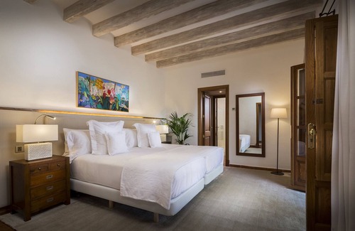 Finca Plantur is one of them, located high up on a hill in its own fenced plot and offering magnificent views of the sea and the mountains. The honey-coloured stone villa is a balanced blend of traditional Mallorcan style with exposed wooden beams, terracotta tiled floors and a cosy fireplace in the living room and plenty of high quality and modern furniture and colourful artwork on the walls. All 5 bedrooms are air-conditioned and fans in the communal area ensure pleasant room temperatures. Other technical features include Wi-Fi throughout the house, Bose speakers in every bedroom and a Sonos sound system controlled via the villa's iPad in the communal areas, including an amplifier by the pool.