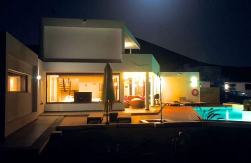 Welcome to Villa Rayito, your house in Lanzarote at the gates of La Geria and Timanfaya. In a rural environment from which you can see the traditional white houses of Uga, the intensity of the volcanic land of Timanfaya and some of the most characteristic nuances of the landscape of Lanzarote, Villa Rayito stands out for its avant-garde architecture. Ideal for couples, adventurers, and families. Housing with a Vacation Housing license The Villa, facing south and protected from trade winds, has a constructed area of 250m2, of which 50 are a basement (for private use as a warehouse). The habitable zone is located on one floor, which in the Canary Islands is known as "terraced house", being the basement ground floor and the upper terrace. The farm has 1,000 m2 and is open to the landscape, closing with a low wall in its perimeter. It is accessed by a private street and has two parking spaces under a pergola.