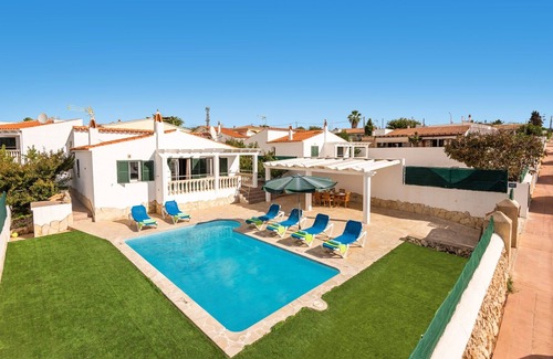 Villa Santi III is a charming villa in a great location, right in the heart of Calan Porter with restaurants and bars within walking distance. This detached, 3 bedroom property has a delightful private pool and terrace from where you can enjoy a relaxing holiday, soaking up the sun. WiFi and air conditioning/heating in the bedrooms and lounge is included.