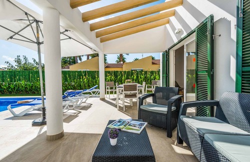 This stylish, modern villa has been beautifully designed with comfortable furniture and all the mod-cons necessary to ensure a relaxing holiday. The 3 bedrooms have the comfort of air conditioning to help with those hot summer nights whilst the inviting water of your private pool is great for a cool down when topping up your tan on one of the loungers. The shaded terrace is a great place to relax with a good book and outdoor dining facilities make outdoor living easy when cooking up a feast for the family on the brick barbeque.