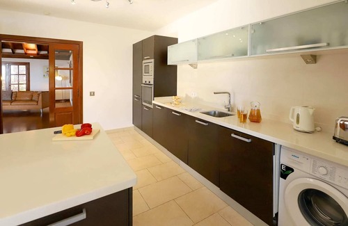 The villa has two double bedrooms and two twin bedrooms, all with air conditioning. There are 4 ensuite bathrooms with walk-in showers, and the villa is laid out all on one level, so would be suitable for guests with mobility problems.