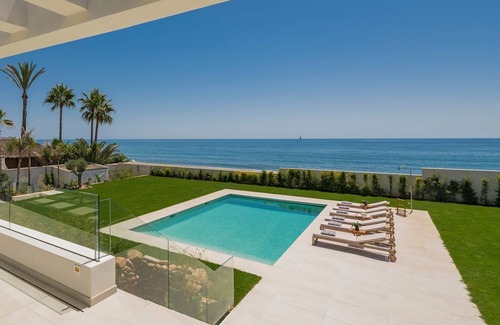 An elegant and minimalist villa located in Mijas, Villa Vista Mijas is placed in a prime location that allows guests to explore a variety of tourist hotspots whenever they please. The exterior of this property is truly exquisite, making good use of an emerald green lawn area. As such, guests are free to use this space to play a variety of games as a group or absorb the blazing warmth of the sun. Plus, this property also showcases an expansive saltwater swimming pool that guests can use to relieve tired muscles after a long day of exploring the local sights. Alongside these luxurious amenities, this villa also offers a striking rooftop terrace that offers an array of panoramic views, partially of the Mediterranean Sea that sits nearby. And, of course, how can we not mention that guests at Villa Vista Mijas benefit from a door that opens up directly onto La Cala beach? You just step out, lay down on the gorgeous sand, and enjoy the stunning weather of the Costa del Sol.