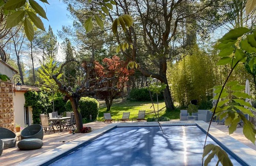 This charming 210-square-meter villa has a 75-square-meter outbuilding, a private SWIMMING POOL, a large GARDEN, a pétanque, badminton or volleyball court, and is ideal for tourist vacations. It can accommodate 14 people. Hiking trails in the Ste Victoire massif and Roques Hautes are accessible from the Villa. Enjoy your stay!