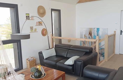 Thanks to its inverted architecture, the living areas upstairs offer exceptional light and a unique panorama of the sea. The atmosphere of the house is cosy, modern and conducive to relaxation.