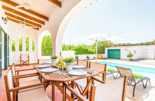 The terrace at Villa Xaloc is welcoming and backs onto open fields giving you an insight into the peacefulsurrounding landscape. There's both an open and a covered terrace with garden furniture and alfresco dining facilities, surrounded by evergreen bushes creating an enclosed garden. There's a brick-built BBQ at the end of the garden, so why not cook up some tasty fresh fish and unwind with a glass of wine in the evening.