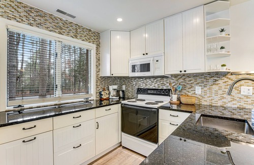 This classic, two-bedroom townhome features a split-level design with bedrooms and bathrooms upstairs and the ground floor devoted to communal living. Furnished with group gathering and entertainment in mind, the ground floor features an open-concept and a rich array of modern amenities. Choose from one of the board games provided and settle down in the living room for a game night or stream your favorite shows and movies on the wall-mounted smart TV. The electric fireplace offers cozy ambiance and added warmth during chilly months. The kitchen is equipped with everything needed for home-cooked meals, including a dishwasher for easy cleanup. Seating for three is available at the breakfast bar and the dining table is set for six. Make the most of sunshine and blue skies on the private, back patio furnished with a four-seater table and two Adirondack chairs, perfect for happy hours and al fresco dining.