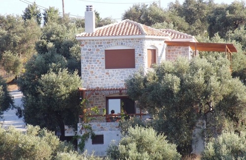 The stone villa can accommodate up to 4 people in comfortable rooms over two floors The ground floor is 45 sq.m. and includes: fully equipped kitchen (with fridge, oven), dining room for four people, and living room with comfortable corner sofa which converts easily to a comfortable double bed, TV LCD 32’,DVD player, plus a downstairs toilet shower and laundry. It has very large balconies overlooking the garden and unique sea views. The upper floor is 35 square meters and includes: bedroom with double bed, plus an upstairs toilet shower, wardrobe, small living room. There is air conditioning and large balcony with superb sea views. The furniture, curtains, covers, lighting and all accessories in each room have been carefully selected in the modern style.