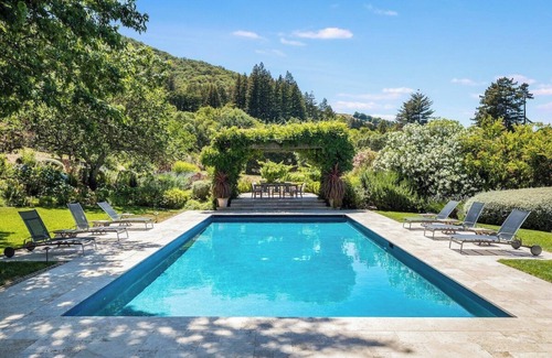 Escape to Wine Country and experience the ultimate luxury at this stunning 5-bedroom estate! Nestled on 8.6 acres with breathtaking vineyard views, this home boasts a private pool, hot tub, and a bocce/pickleball court for endless fun. Enjoy elegant interiors, a gourmet kitchen, and outdoor spaces perfect for relaxing or entertaining. Located near top wineries and Sonoma Valley Regional Park, this is the ideal retreat for families and groups seeking an unforgettable getaway.