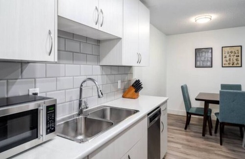 This 1 bedroom, 1 bathroom condo has 2 beds in 700 sqft ground level, and boasts 2 parking spots. The unit is centrally located in Abbotsford with everything you need only minutes away. There are 2 smart TVs for you to login to your favorite streaming services, one in the bedroom and one in the living room. The well-stocked kitchen has everything you need to prepare meals.