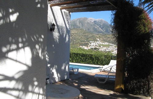 Single storey detached villa with private pool, set in fenced and gated grounds with established garden, private driveway, terrace, pool terrace, private pool. Stunning views of La Maroma, valley and surrounding white villages.