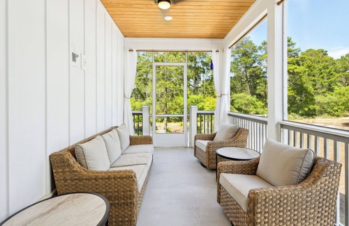 Vitamin Sea has a spacious open floor plan with a gourmet kitchen. The dining table seats up to six and the expansive island has seating for four. Enjoy the screened in porch with outdoor patio furniture, the backyard with a gas fire pit and gas grill, or relax on the welcoming front porch with rockers.
