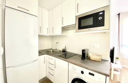 This building was constructed quite recently, so everything you see is new. The first thing we see is a spacious living room, pretty bright thanks to its large exterior windows. It is equipped with a 43" HD Android TV, hi-speed optical fibre internet connection (around 100mbps), A/C with heating mode, a dining area with a large table with room for 4 people and a premium quality sofa/bed that, when open, provides good quality rest on its 1,35m wide mattress. The kitchen is open plan and equipped with the main appliances and elements needed for cooking, apart from offering complimentary basic products such as oil, salt, coffee, sugar, etc. The bedroom has a 1,35m wide double bed, two bedside tables and a large built-in wardrobe where you can store all your clothes and belonging comfortably. The area is quiet during the night and the bedroom is oriented to a private patio, so silence and rest are during the night are guaranteed. The bathroom is located next to the entrance and it is equipped with a shower cabin, mirror, electric radiator/towel dryer and a travel hairdryer. The size of the parking spot is 4,70 x 2,20 meters so most cars will fit in and it is located in a private underground garage 1 minute away from the apartment.