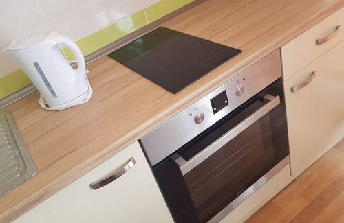 Studio apartments are located in a new building. These studio apartments come with a living room, a kitchen, a dining area, and a bathroom. Apartments are on the ground floor. There is a flat-screen TV with cable programs in the living rooms. The kitchen comes with a fridge, oven, stove and an oven.
