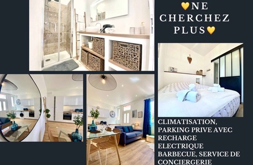 NEAR TRAIN STATION, DOWNTOWN, CANAL: 58m2 flat near the train station, the city centre and the canal port, all within a 10 minute walk and above all quality services such as private parking and air conditioning. Warm, practical, comfortable, a great decoration, a private terrace of 30m2 with barbecue, this flat is perfect to feel at home. Not accessible to PRM.