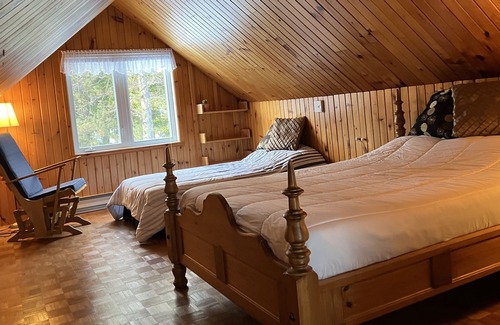 Located in Saint-Alphonse-Rodriguez, this welcoming chalet brings it all within your reach. With convenient onsite parking, you'll be ready to make the 14-minute drive to La Source Bains Nordiques or the 23-minute drive to Ski Montcalm.