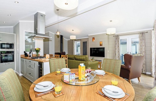 Indulge in the epitome of luxury with our lodge, a perfect haven for a relaxing break in the Lakes. The country-chic open-plan living area welcomes you with a large Flatscreen TV, inviting sofas, and a warming wood burner, creating a cosy ambiance. The elegant kitchen, featuring a breakfast bar, seamlessly blends with the stylish dining area for delightful gatherings. The en suite master double bedroom features a monsoon shower. Additionally, a spacious twin room and a family bathroom complete the accommodations. Open the enchanting French doors and step onto the decking area with outdoor furniture, an ideal space for al fresco dining. Interior fixtures and fittings may vary. Please note: If you plan to bring a cherished pet, use the pet filter during the booking process to notify the resort in advance. Immerse yourself in Lakeside luxury, create cherished memories, and let this lodge be the perfect canvas for your rejuvenating escape. Pets allowed in selected accommodations only.