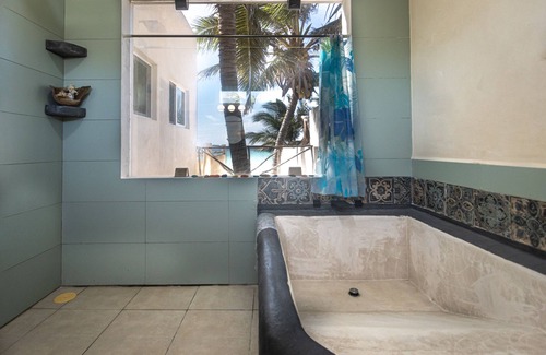 New upper level one-bedroom apartment in a 2-story house. Ocean views from every room. Listen to the waves and enjoy the breeze on your private beachside terrace or soak in the sun on your private pool facing terrace. Relax and recharge in a peaceful setting.