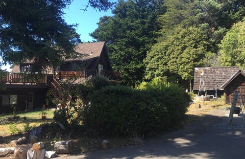 Clean and comfortable large (2,200 sf) 1970's A-Frame on 10 acres. Large ocean view roof deck and yard. Plenty of private parking. Both bedrooms have vaulted ceilings and en-suite bathrooms, as well as private balconies. The master bedroom has a filtered ocean view. 15 minute walk to the beach and Virgin Creek estuary at the south end of MacKerricher State Park. Paradise for hikers, mountain bikers, SUP, kayakers, surfers. Nearby to the town of Mendocino and the Lost Coast.
