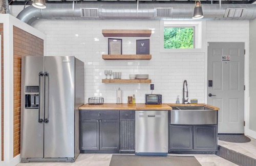 Stay in style just minutes from downtown! This spacious, industrial-inspired loft features tall ceilings, tons of natural light, and an open layout that gives you room to relax. Unwind in the comfy king bed, refresh in the oversized walk-in shower, and enjoy easy access to everything, including a short walk to the popular Rail Trail. Whether you're in town for work or play, this spot gives you modern comfort in a prime location.