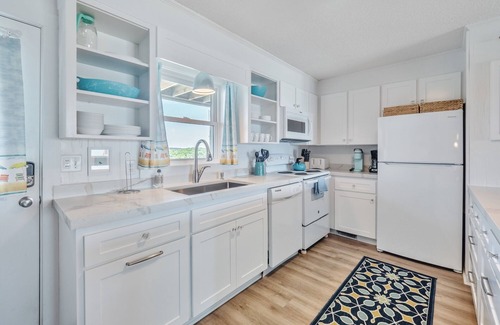 You'll be walking on Sunshine when you stay at this fresh and updated lower level duplex! The h-design floor plan provides an open area for living, dining, and kitchen with stunning Atlantic Ocean views. Two bedrooms and a shared bath between on each side of the living space create space for quiet solitude. Both oceanfront bedrooms also offer dazzling Atlantic Ocean views. Step down to the beach and curl your toes in the sand via the beach access walkway with convenient rinse-off shower shared with Walking on Sunshine - Pelican level. Other facilities shared with Walking on Sunshine - Pelican level include the laundry area, ample parking, and main entry stairway.