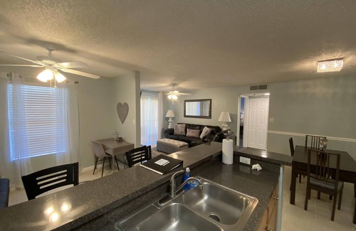 Our spacious water front condo is a 1 bedroom with a den and 1 bathroom unit located on the ground floor. The unit has about 800 square feet, an open floor plan, water views, and a large screened patio. The master bedroom has a king size bed and a walk in closet There is a 50in flat screen TV in the living room and there is also an about a 42in flat screen in the master bedroom. PLEASE ENSURE YOU READ THE "ADDITIONAL INFORMATION" BELOW PRIOR TO BOOKING TO ENSURE YOU UNDERSTAND THE SLEEPING CAPACITY IN BEDS AND THE TOTAL UNIT CAPACITY.