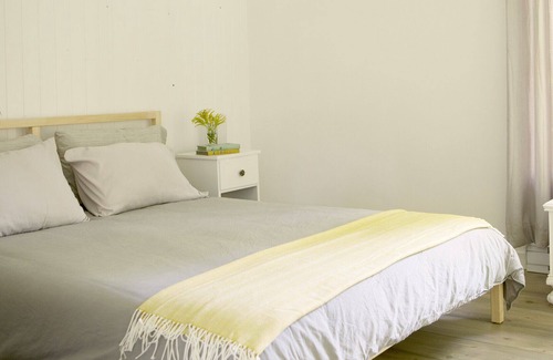 Haven of peace in the heart of nature, this 2 bedroom chalet with pullout couch, perfect for relaxing and is located on the edge of a small lake that is very quiet, surrounded by trees and friendly animals. Enjoy the lake, take a swim or just let your feet feel the cool water.
