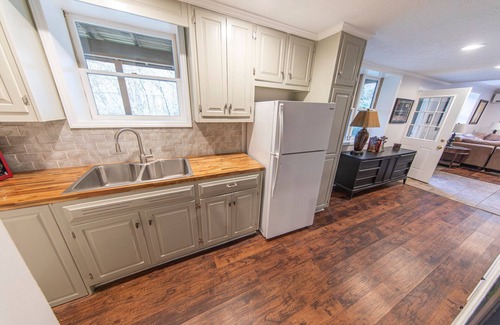 Your vacation home features a full 7 bedrooms, with 5 bedrooms and 3 bathrooms on two levels in the main house and an additional 2 bedrooms and a full bathroom in the guest house located above your garage and connected by a short breezeway. There will be plenty of space for your family to enjoy each other's company with over 3700+ square feet of living space indoors and so much more space outdoors! Your vacation cabin features a fully equipped kitchen (technically 3 kitchen spaces!!!), two fireplaces, cable TV (upstairs and downstairs), WiFi that covers the entire property, DVD library, a second kitchen in the guest house, family-friendly firepit, 6 person HOT TUB, central heat, central air (A/C), washer and dryer and office space in the guest house. Not to mention your own private pond, a reading hammock adjacent to your own private waterfalls and Watauga River frontage (it's a hike down to the river through brush) whose sounds will tickle your ears and make lasting mountain memories and core family memories.