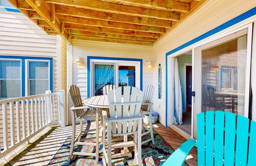 Centrally located in beautiful Hatteras Village, Slash Creek Condos have it all. Each semi-sound-front condo includes its own boat slip for outboard boats up to 25-feet, so don't forget the fishing poles. The kids will love fishing and crabbing from the Creek's long walkways along the creek. The site is well-landscaped and the community pool is open Memorial Day through Labor Day. With a spacious, upscale kitchen and a living area with resort furnishings, a covered deck, and wetland views, you'll feel right at home. When you enter Hatteras Homerun, you’ll find a closet with a stacked washer and dryer near the half bath. The living area also provides access to the deck through the slider. On the deck, you'll enjoy views of Slash Creek with your morning coffee or a glass of evening wine at the pub table with four chairs. Back inside, your guests will enjoy their queen main bedroom with a soaking tub/shower combo and a TV. After a day at the beach, relax in your private main bedroom with a whirlpool tub/shower combo. Have a homerun vacation at Hatteras Homerun!