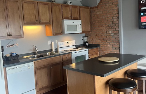 Large 1 Bed Condo with a queen size sleeper sofa great views of Cedar Point Amusement Park and Sandusky Bay, Jackson Street Pier located next door with free concerts and family friendly entertainment for everybody. Ferries right next to you will take you away to the nearby Islands of Kelleys Island and Put in Bay and Peelee in Canada.