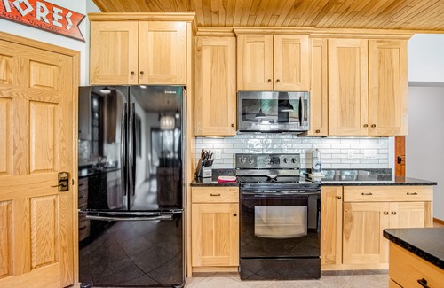 The pristine kitchen is equipped with a full suite of appliances and a roomy island, perfect for prepping your favorite recipes. After fun-filled days, stream your favorite TV shows on the smart TV. Added perks of this family-friendly home include provided board games, complimentary WiFi, and central AC.