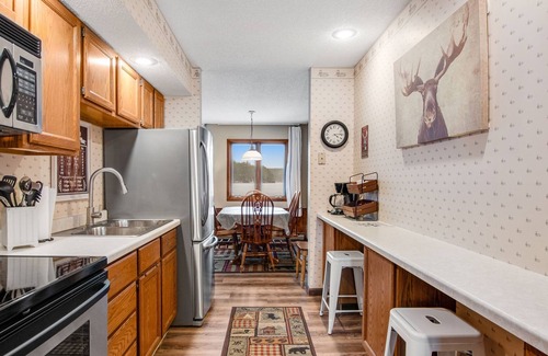 Back inside Bridge View and Moose Trail, continue to gaze out at gleaming lake views. Both of the condos are equipped with comfortable furnishings, wood-burning fireplaces, and well-equipped kitchens. The charming wilderness theme extends throughout each and every room of both retreats. No one will have an issue getting comfortable amongst their room's soft quilts, wooden furniture, and private TVs. Central air-conditioning, DVD players, and internet access round out the stellar interior perks.