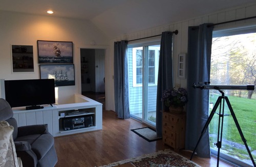 Enjoy coffee in the dining room while the sun rises over the cove. Grill a steak on the Weber charcoal grill on the deck or cook up a lobster dinner in the cottage kitchen and enjoy your seafood dinner while the cool shore breezes blow in. After dinner you can star gaze while you sit around the fire pit and roast marshmallows.