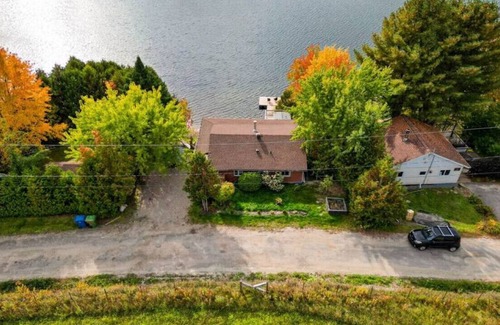 It’s “all decked out” named after it’s amazing decks and picturesque waterfront view Kick back and relax in this calm, sereen space where you can catch stunning sunsets while lounging in a luxurious hot tub. Just 1 hour from Ottawa, 35 minutes to Tremblant and 1 hour to Montreal this is the perfect place to relax and take in the view. Well serviced road in the winter, steady wifi and WOW what a great lake. Sandy beach and gradual progression into the water, its perfect for families!