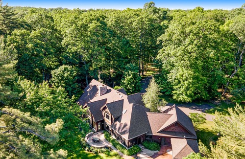 Located on more than two-and-a-half acres, right on the shore of Townline Lake, Maison du Lac offers a complete North Woods experience for guests of all ages. This spacious and undeniably elegant, manor-style home features tasteful, designer-coordinated furnishings, incredible lakefront views, floor-to-ceiling windows, and indoor and outdoor inviting living spaces spread over three levels. Beginning with the main floor, this home features a well-equipped, eat-in, gourmet kitchen, a formal dining area, screened-in porch, and a sunken living room with soaring ceilings, a wall of windows, and a warming gas fireplace. Downstairs, the fun really begins with a pool table, full bar, game tables, and media center. Also on-site, guests will enjoy access to a lakeside beach, firepit, private hot tub, and furnished BBQ pavilion.