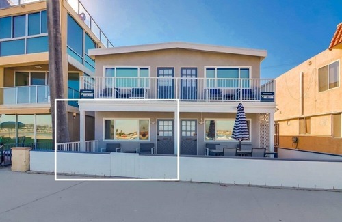 Welcome to our newly professionally designed home located on a white sandy swim-friendly bay in the heart of Mission Beach. This convenient ground level waterfront home is located in a quaint 5-unit building. Features include Studio + 1ba, lay in your very own plush King bed with views out to the bay while watching Netflix on your Samsung SMART TV (includes cable), exclusive fenced bayfront patio with outdoor seating, 1 driveway parking, A/C, wood flooring, quartz counters, stainless appliances, & designer beachy aesthetic. *Note these units do not have bbq's