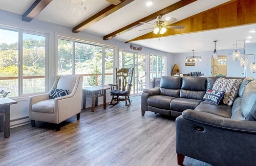 Take a break from it all and ease into the slow lifestyle of Port Orford. Boasting a picturesque location right on the water with a private dock, hot tub, large deck, and views from nearly every room, you will have no trouble slipping into relaxation with a cup of coffee in hand each morning. The interior of this getaway offers coastal charm that will invite each guest with vaulted ceilings, modern furnishings, and an open layout that is perfect for entertaining the whole gang with ease. When you want to whip up a tasty snack or gourmet meal, the full kitchen is equipped with stainless steel appliances, wonderful countertops, and an island with bar seating to make meal prep a social event. Plus, no one will have to be disconnected on this vacation, as free WiFi and a flatscreen TV await for sharing memories on social media, catching up on emails while away, or streaming favorite movies as the stars come out!
