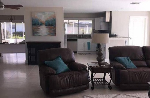 Experience the perfect waterfront getaway in this charming 3-bedroom, 2-bathroom home in Port Charlotte, FL! Located right on the water, enjoy fishing right from your backyard and stunning views. The updated home features a beautiful kitchen, spacious living areas, and comfortably sleeps 6-7 guests. The town offers a relaxed, beachy vibe with plenty of local charm. Whether you're relaxing by the water or exploring the area, this is the ideal retreat for your next vacation!