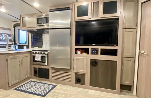 Get ready for a fisherman's paradise on the Bay. This camper is perfect for a cozy, sun-kissed getaway with direct access to Rollover bay. Access our on property dock for great fishing and crabbing while being able to see the beach just across the way. Come home to a clean space with everything you need to create a memorable vacation!